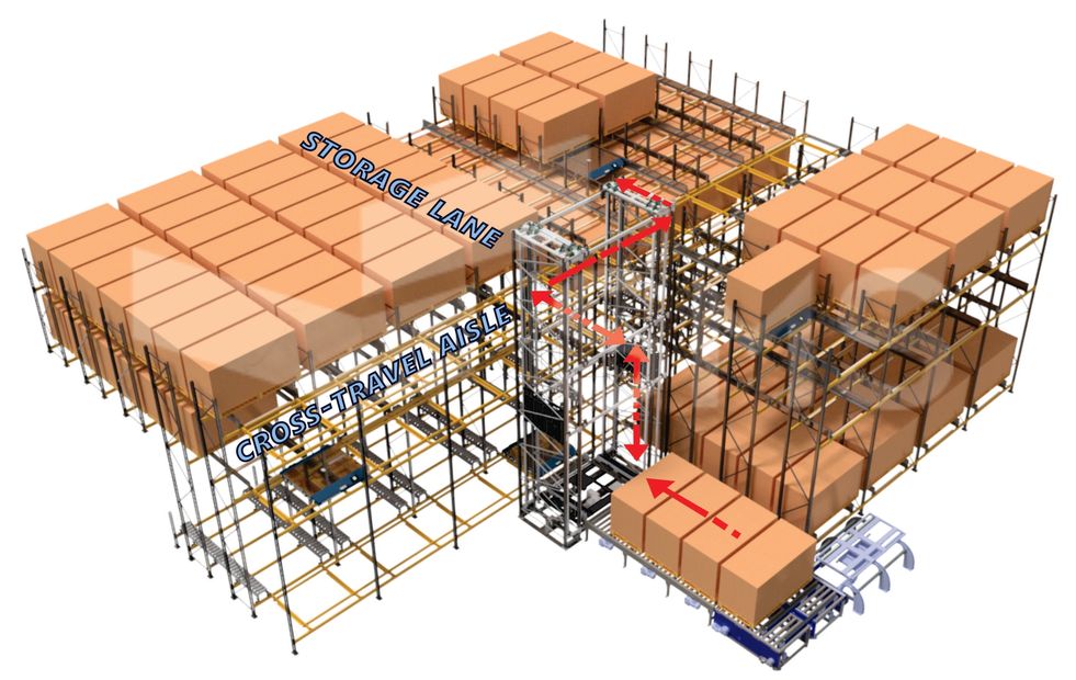 An automated bi-directional, cart-based, high-density, deep lane storage, palletized load, “Lift- & Run” system, which provides flexible throughput together with ultimate scalability.
